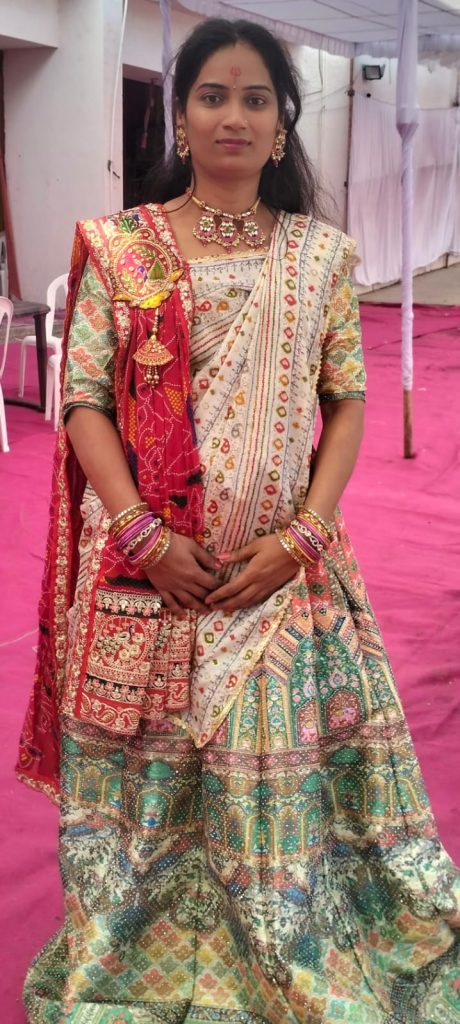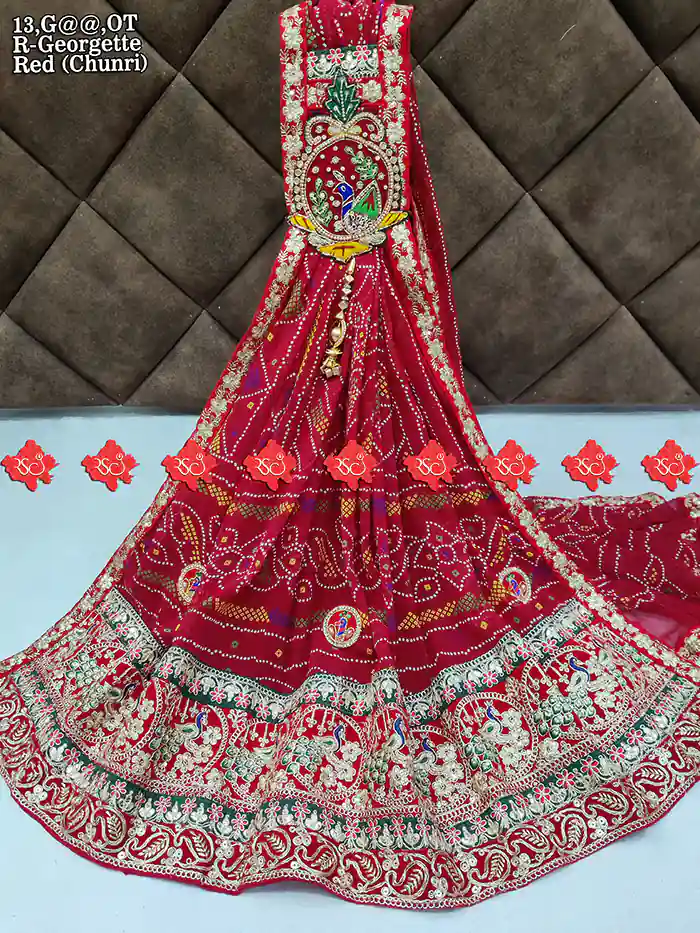 An Traditional R-Georgette Odhna (or Dupatta/Chunri) made from R-Georgette fabric is a traditional drape mostly worn in Rajasthani, Marwari & Gujarati culture, as well as in festive and wedding occasions.
