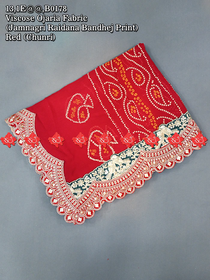 Experience the vibrant heritage of Rajasthan with our Marwari Festive Viscose Ojariya Odhna. Crafted from 100% pure Viscose Ojariya fabric, this chunri is light, breathable, and perfect for all seasons, especially the hot and dry climate of Marwar.
