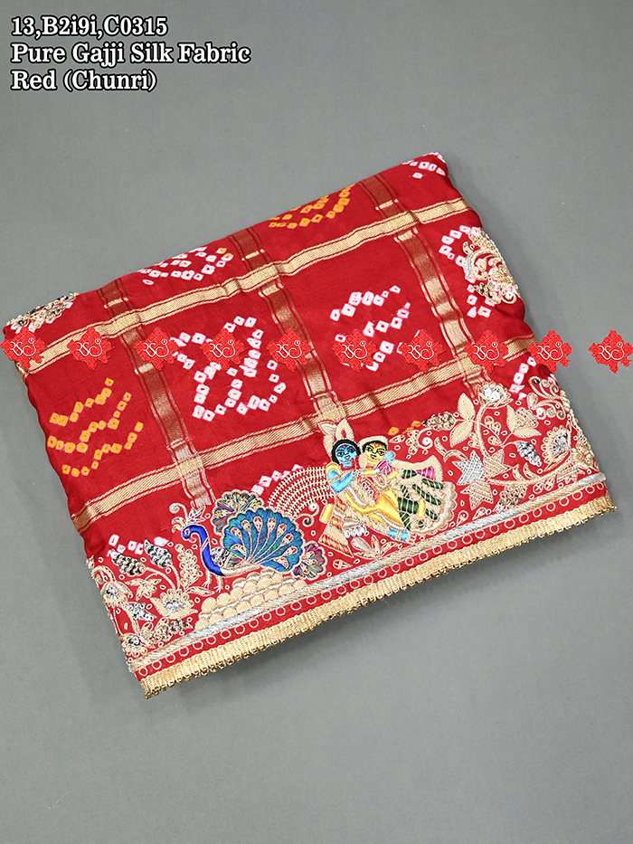Premium Gajji Silk Odhna with Mayur & Radha Krishna Design Aaratari Work