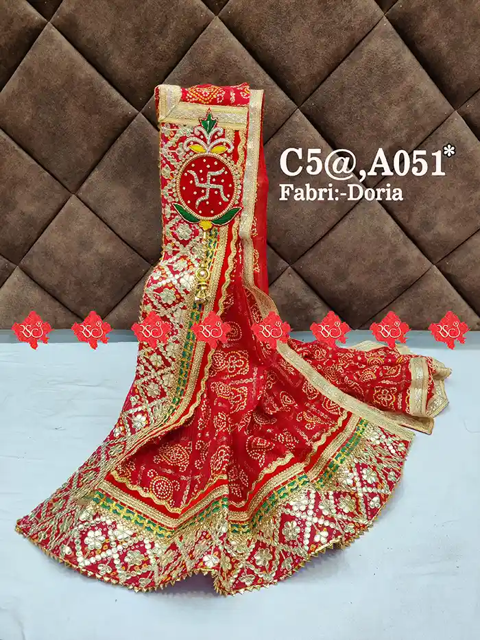 The Doria Fabric Odhna showcases authentic patch work odhna design odhna Marwari designs traditional colors like deep reds, bright yellows, and royal blues. Each piece is handcrafted by skilled artisans, preserving the centuries-old technique that symbolizes the culture and spirit of the Marwari community.