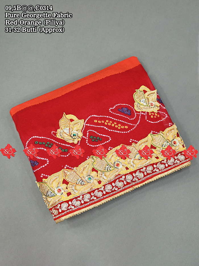 नोट : “1½ (डेढ़ पार्ट)” Pure Georgette/Ojariya का अर्थ है कि यह पारंपरिक रूप से एक और आधे भाग के कपड़े को जोड़कर बनाया जाता है।