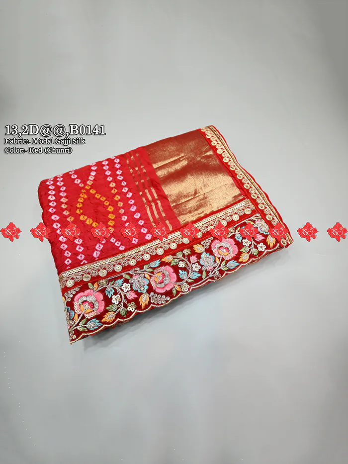 This Modal Gajji Silk Belbutti Odhna is crafted with care, using luxurious fabric, rich lace borders, and traditional craftsmanship. The Modal Gajji Silk Chunri from Ranisatiya Creation not only feels extremely comfortable but also gives a premium and royal appearance when worn.