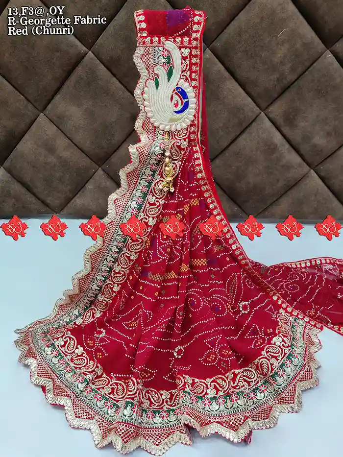 An Marwari R-Georgette Fabric Odhna (or Dupatta/Chunri) made from R-Georgette fabric is a traditional drape mostly worn in Rajasthani, Marwari & Gujarati culture, as well as in festive and wedding occasions.