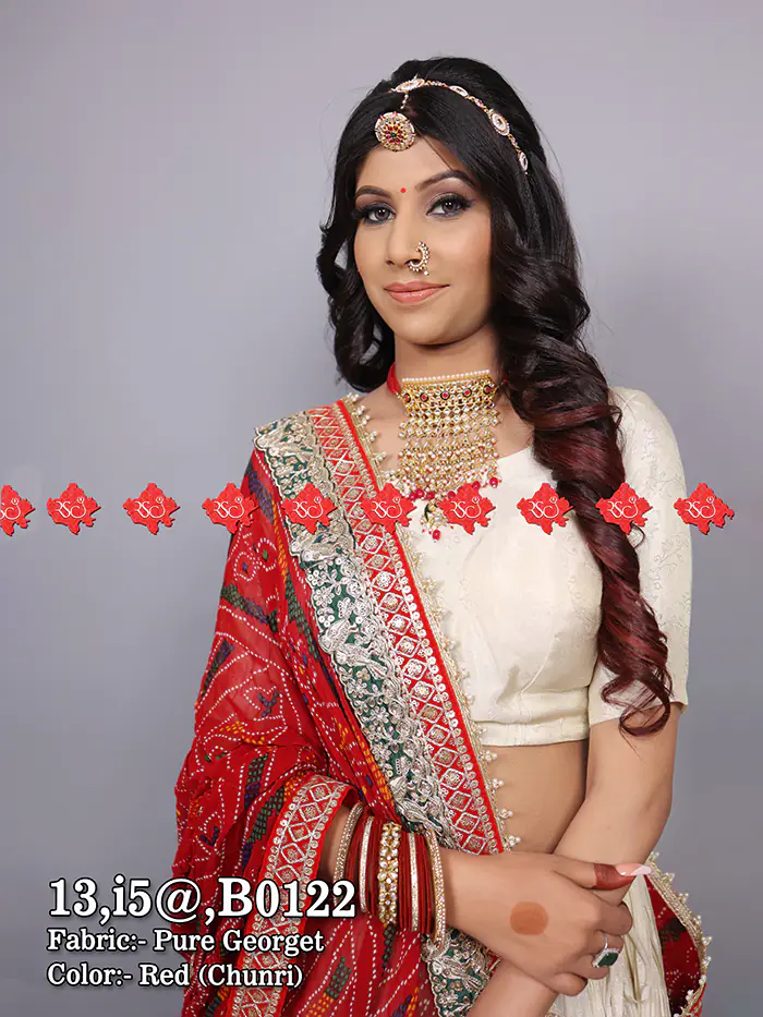 This Pure Georgette Red Bandhej pattern Dupatta, created by Ranisatiya Creation, is beautifully crafted with exquisite lace designs and is prepared with great care. The odhna made by Ranisatiya Creation is extremely comfortable to wear and looks very luxurious and expensive.