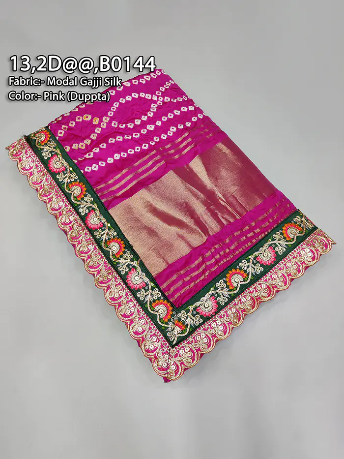 This Modal Gajji Silk Belbutti Odhna is crafted with care, using luxurious fabric, rich lace borders, and traditional craftsmanship. The Modal Gajji Silk Chunri from Ranisatiya Creation not only feels extremely comfortable but also gives a premium and royal appearance when worn.