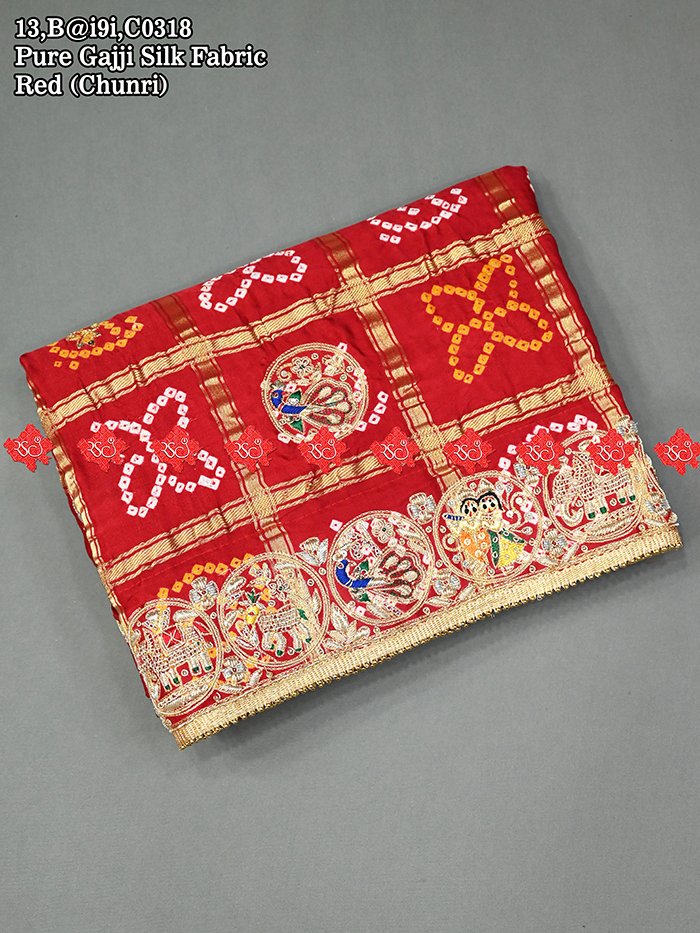 Designer Mayur With Radha Krishna Pattern Pure Gajji Silk Aaratari Handwork Odhna
