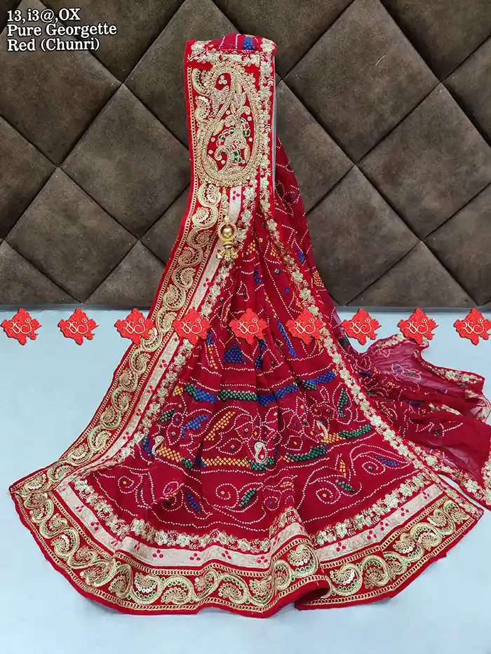 ThisPure Georgette Marwari Odhna Puja Broach Odhna, created by Ranisatiya Creation, is beautifully crafted with exquisite lace designs and is prepared with great care. The odhna made by Ranisatiya Creation is extremely comfortable to wear and looks very luxurious and expensive.