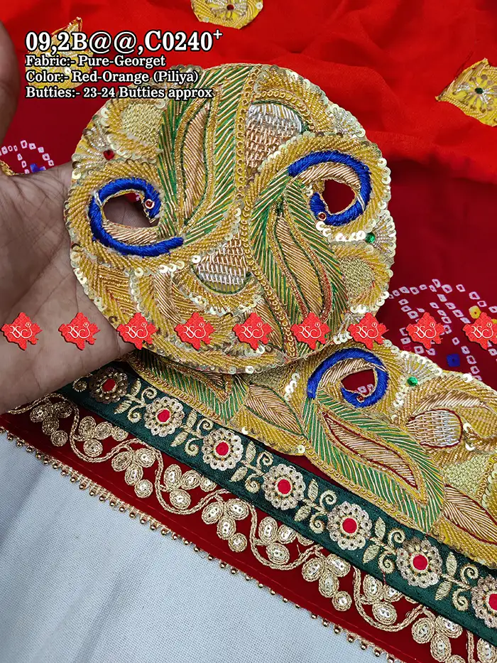 नोट : “1½ (डेढ़ पार्ट)” Pure Georgette/Ojariya का अर्थ है कि यह पारंपरिक रूप से एक और आधे भाग के कपड़े को जोड़कर बनाया जाता है।