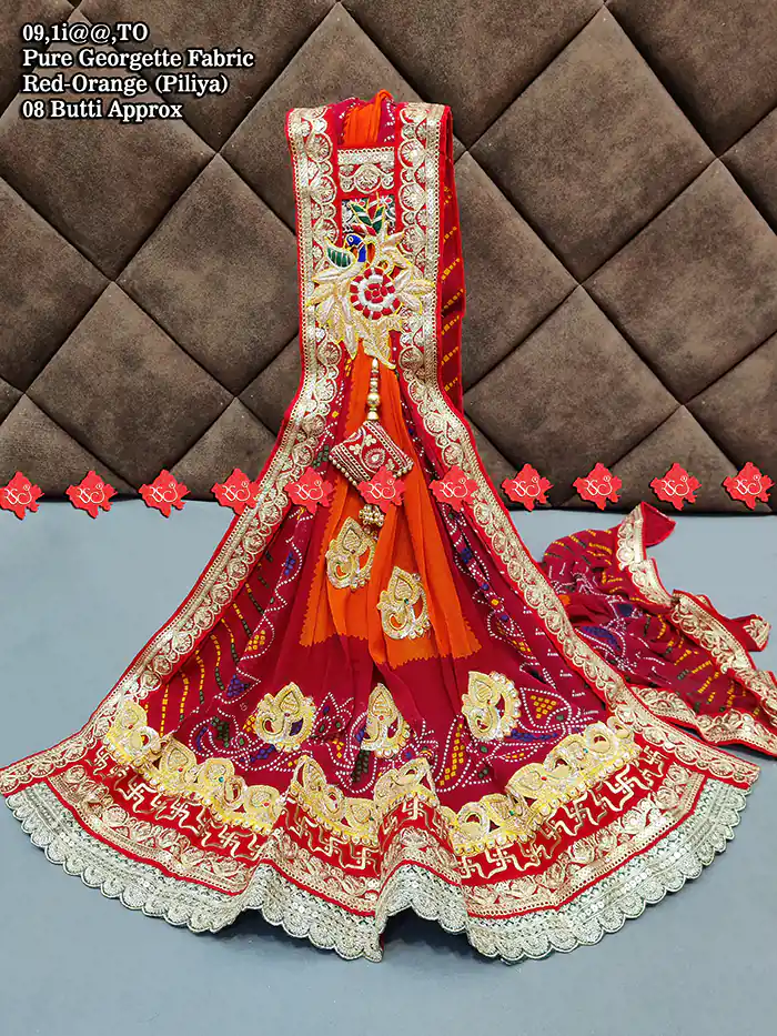 ThisPure Georgette Marwari Odhna Puja Broach Odhna, created by Ranisatiya Creation, is beautifully crafted with exquisite lace designs and is prepared with great care. The odhna made by Ranisatiya Creation is extremely comfortable to wear and looks very luxurious and expensive.