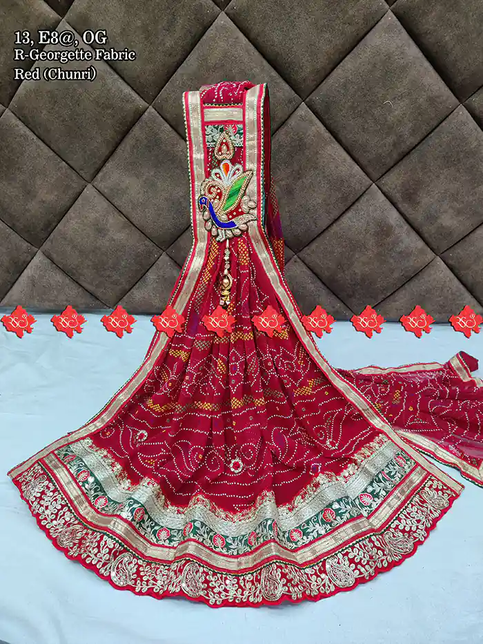 An Traditional R-Georgette Odhna (or Dupatta/Chunri) made from R-Georgette fabric is a traditional drape mostly worn in Rajasthani, Marwari & Gujarati culture, as well as in festive and wedding occasions.