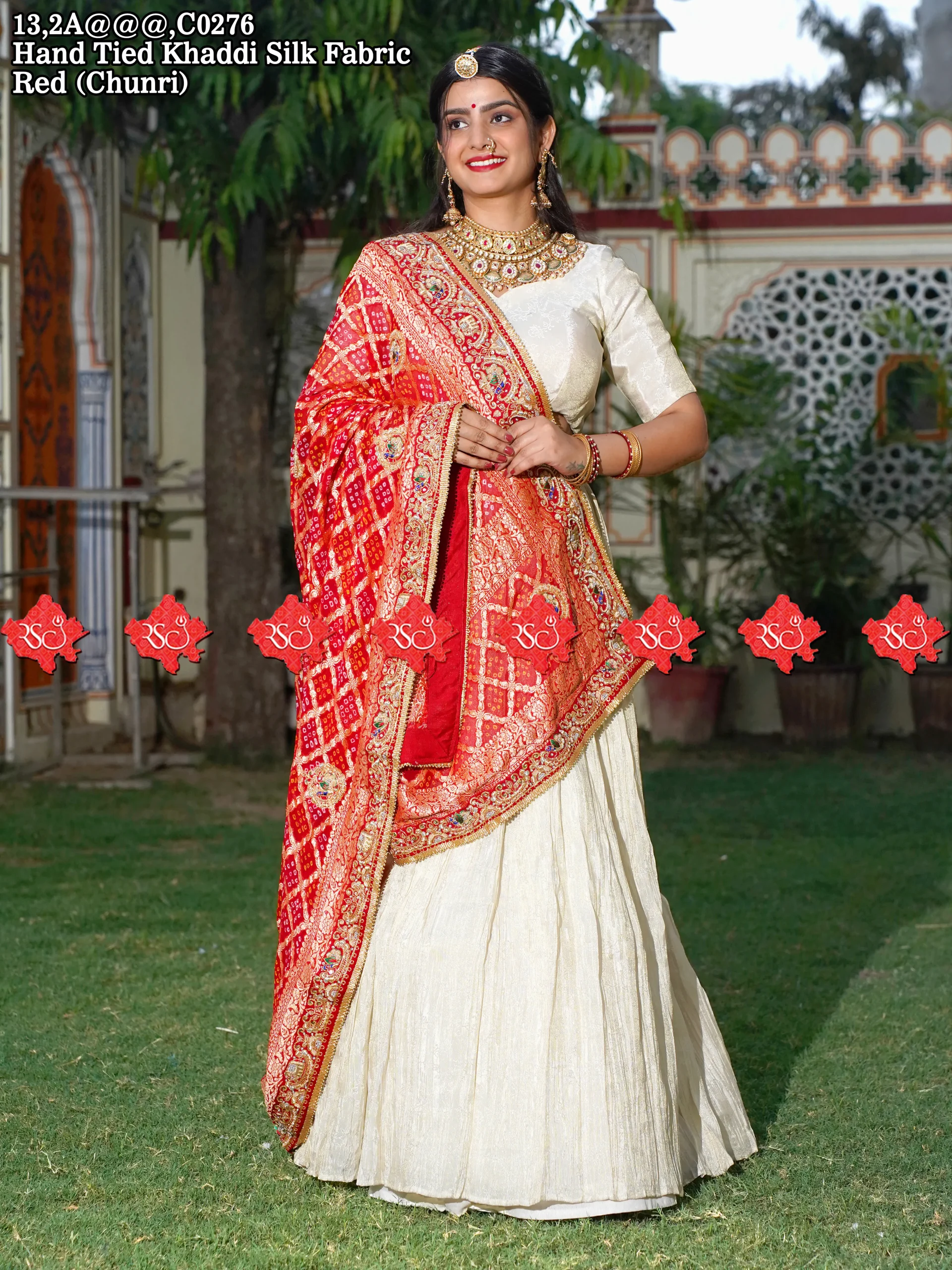 This Khaddi Silk Aaratari Odhna is crafted with care, using luxurious fabric, rich lace borders, and traditional craftsmanship. The Khaddi Silk Aaratari Odhna from Ranisatiya Creation not only feels extremely comfortable but also gives a premium and royal appearance when worn.
