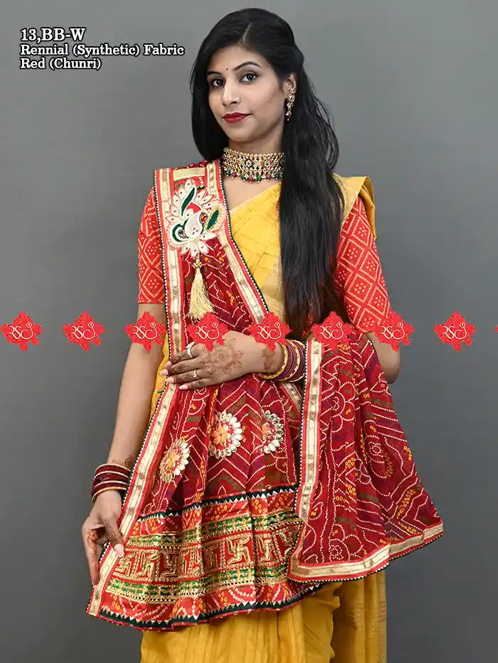 Experience the vibrant heritage of Rennial synthetic odhna with our Rennial Fabric Marwari Traditional Chunri. Crafted from 100% pure cotton fabric, this chunri is light, breathable, and perfect for all seasons, especially the hot and dry climate of Marwar.
