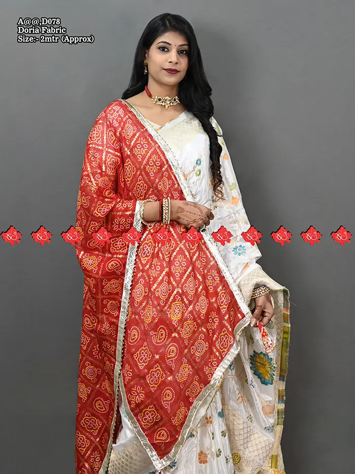 This Zari Weaving Marwari odhna, created by Ranistaiya Creation, is beautifully crafted with exquisite lace designs and is prepared with great care. The Marwari odhna made by Ranisatiya Creation is extremely comfortable to wear and looks very luxurious and expensive.