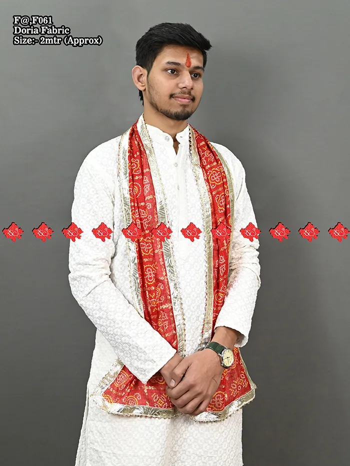 Make a bold yet royal ranisatiya marwari men dupatta for gentlemen with this Welcome Gents dupatta crafted in premium fancy khadi silk. Adorned with elegant tassels, this dupatta adds a perfect touch of ethnic charm to any kurta or festive outfit. Lightweight, breathable, and rich in texture, it’s ideal for weddings, cultural events, or everyday traditional wear. These bold shades alike, making it a versatile piece in every man’s ethnic wardrobe.