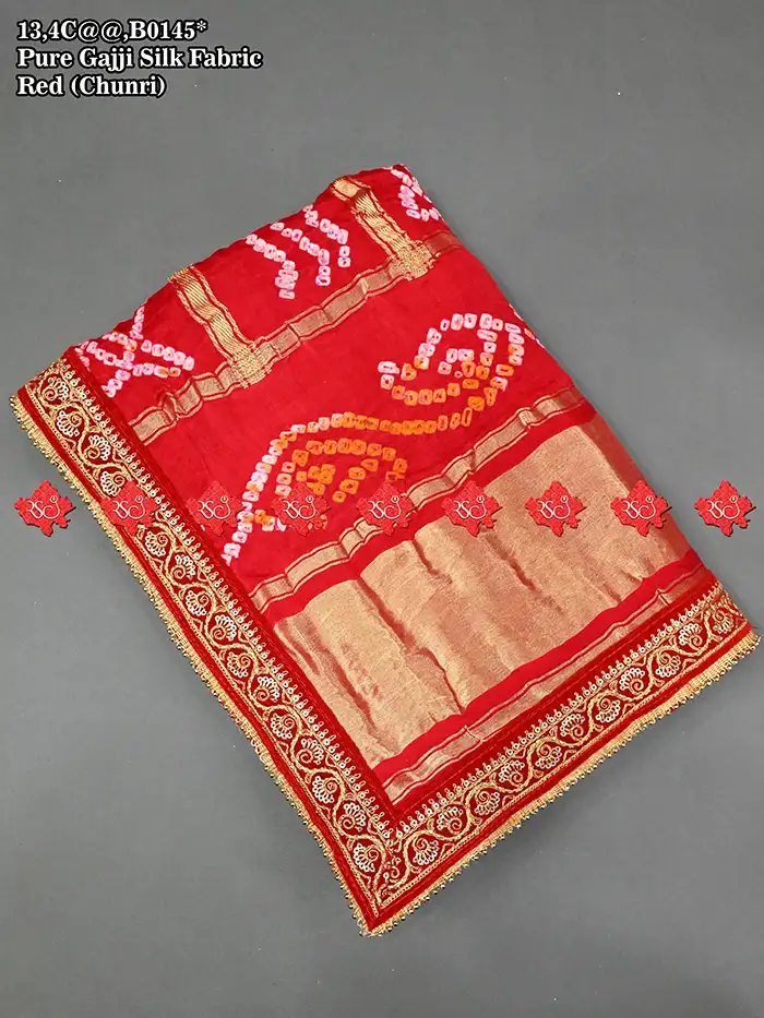 This Pure Gajji Silk Belbutti Odhna is crafted with care, using luxurious fabric, rich lace borders, and traditional craftsmanship. The Pure Gajji Silk Chunri from Ranisatiya Creation not only feels extremely comfortable but also gives a premium and royal appearance when worn.