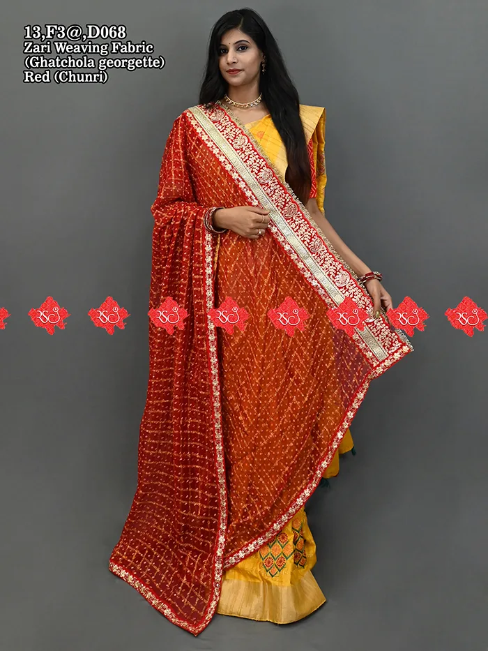 This Zari Weaving Marwari odhna, created by Ranistaiya Creation, is beautifully crafted with exquisite lace designs and is prepared with great care. The Marwari odhna made by Ranisatiya Creation is extremely comfortable to wear and looks very luxurious and expensive.