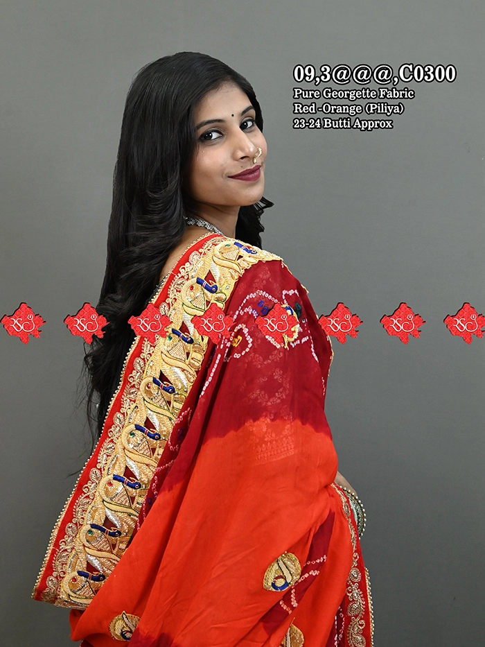 नोट : “1½ (डेढ़ पार्ट)” Pure Georgette/Ojariya का अर्थ है कि यह पारंपरिक रूप से एक और आधे भाग के कपड़े को जोड़कर बनाया जाता है।