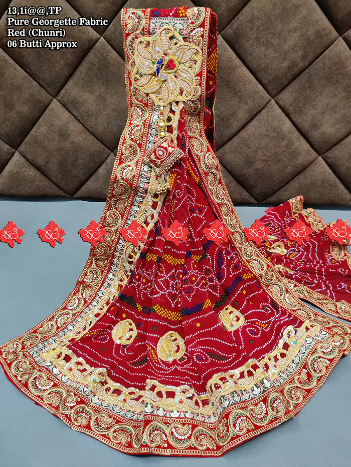 ThisPure Georgette Marwari Odhna Puja Broach Odhna, created by Ranisatiya Creation, is beautifully crafted with exquisite lace designs and is prepared with great care. The odhna made by Ranisatiya Creation is extremely comfortable to wear and looks very luxurious and expensive.