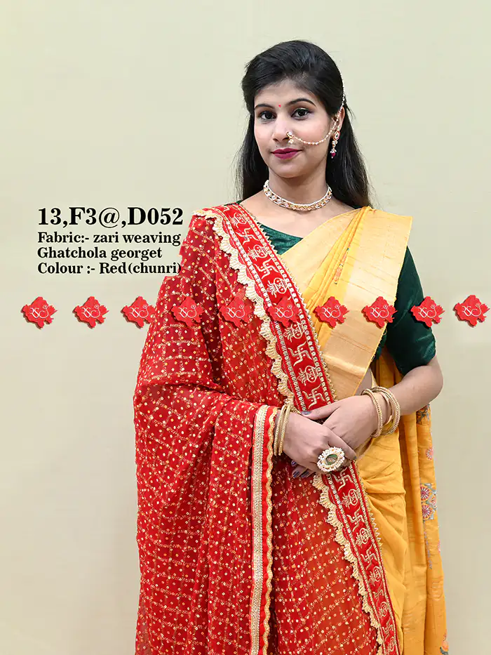This Zari Weaving Marwari odhna, created by Ranistaiya Creation, is beautifully crafted with exquisite lace designs and is prepared with great care. The Marwari odhna made by Ranisatiya Creation is extremely comfortable to wear and looks very luxurious and expensive.